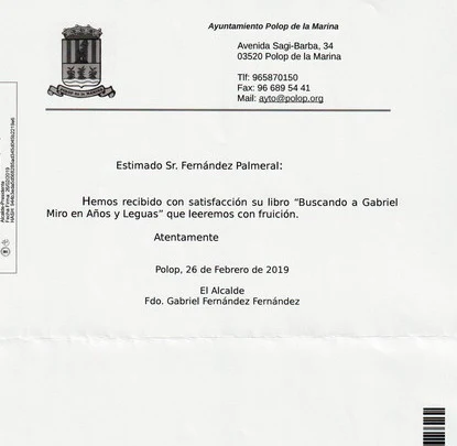 Acuse de recibo del Ayuntamiento de Polop